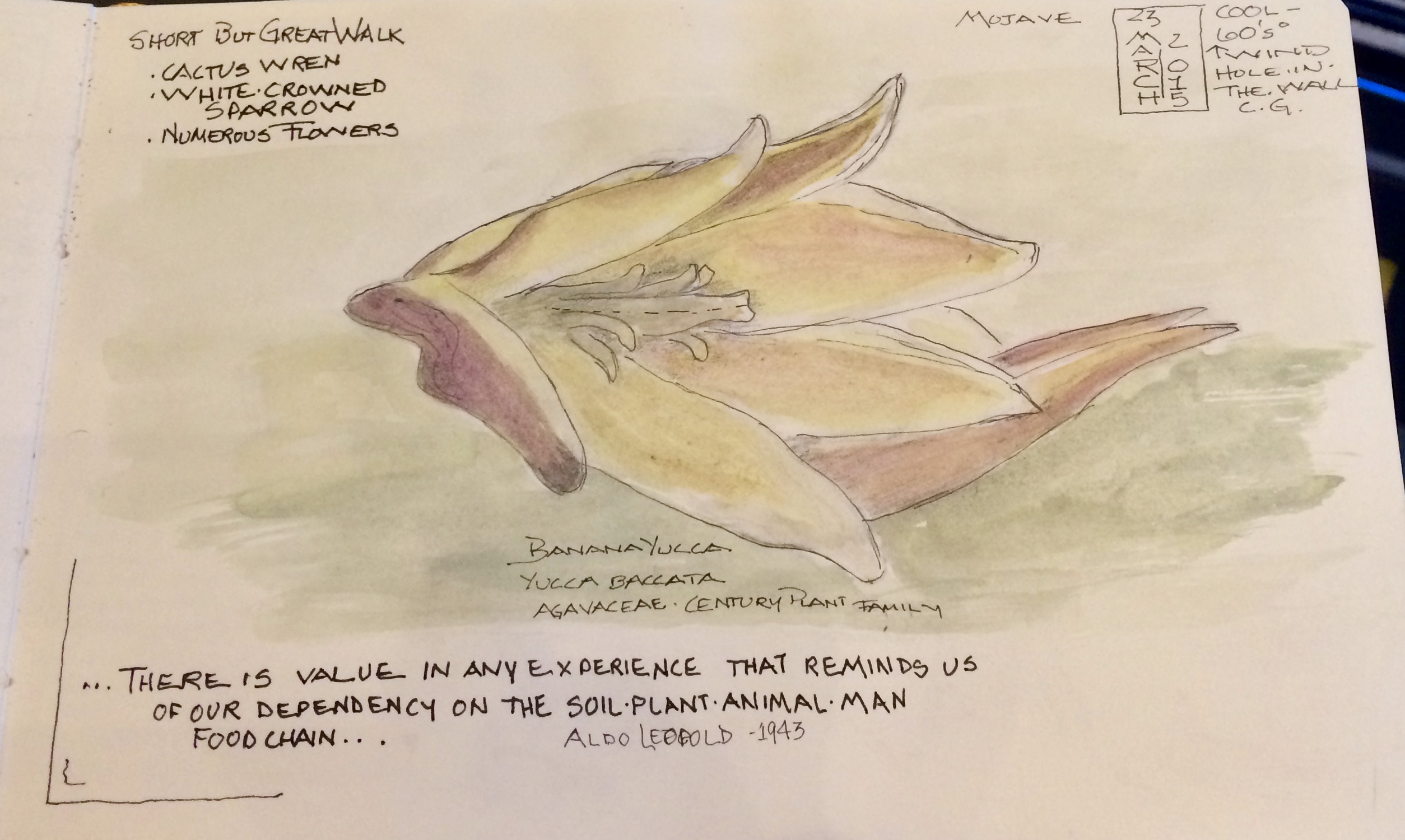 Mojave: I remember winds, sun, camping in Hole in the Rock with Teresa, in awe at the yucca flowers.