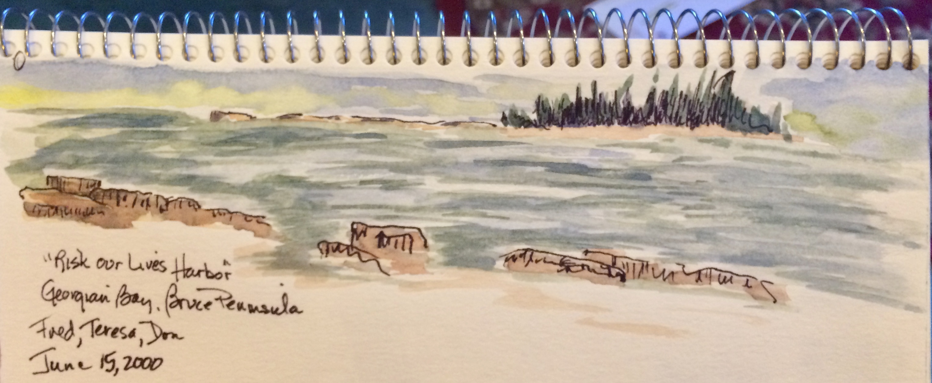 An early entry: First kayak trip, Great Lakes. I remember huge grey waves, fear, cold rain and the pain of learning to paddle for the first time. I also remember laughter and joy with a new husband and good friends.
