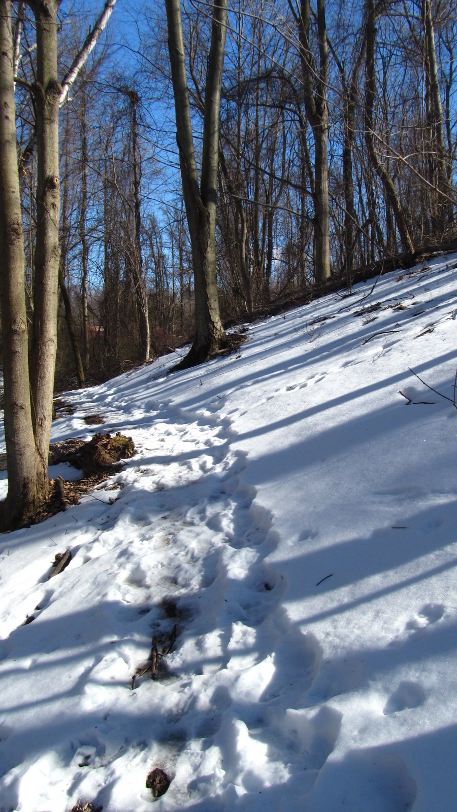 On a recent trip home I made a pilgrimage. The trailhead and parking lot lie barely a mile from my parents’ house, and I’ve even jogged here from home on occasion. First trek, this visit, I kept to the inner-ring trails of blue and yellow; on a second, I wove a longer route, braving thick mud and ice-crusted snow through the hillier back sections of green, red, and brown, ending in a sprawling meadow before doubling back to the trailhead.